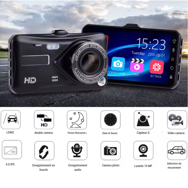 Dashcam Caméra Embarquée de Voiture avec Écran Tactile